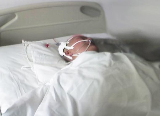 二零零七年三月,张连英因为炼功,被包夹犯人殴打,颅内两侧大面积出血,她被从天堂河医院转到北京仁和医院做手术,医生讲有生命危险,危险期十二天。这样,清清和爸爸再次被允许去探视。当时张连英躺在医院的病床上,头发被剃光,全身插满了管子。清清只见了妈妈一眼,她问妈妈怎么了?警察就让他们出去。小清清不知道妈妈为什么不能动换,她呼喊着:“妈妈回家!妈妈回家!”可是妈妈却听不到她的呼唤。