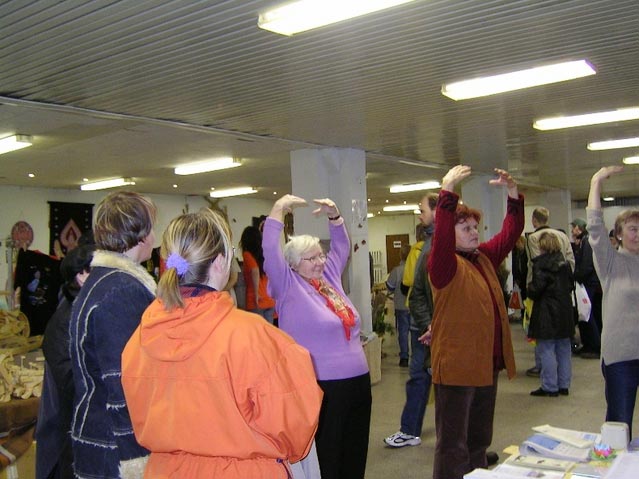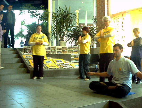 ![]() 二零零五年八月二十七日,法轮功学员应邀参加爱沙尼亚萨乌艾市健康展览会并展示功法 |