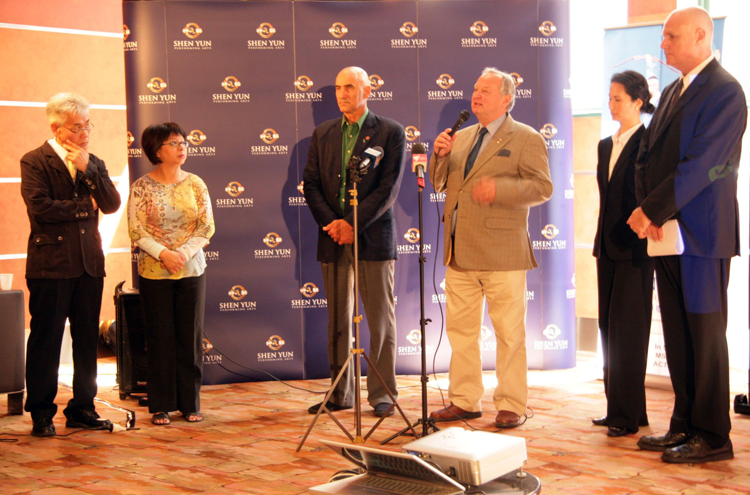 神韵国际艺术团团长李维娜女士、纽省绿党议员伊恩‧寇恩(Ian Cohen)、纽省立法会议员高登‧莫伊斯(Gordon Moyes)先生、越南社区1.706频段电台台长约奇姆‧阮与节目主持人宝肯等出席了新闻会,共同会晤了媒体,并回答提问。