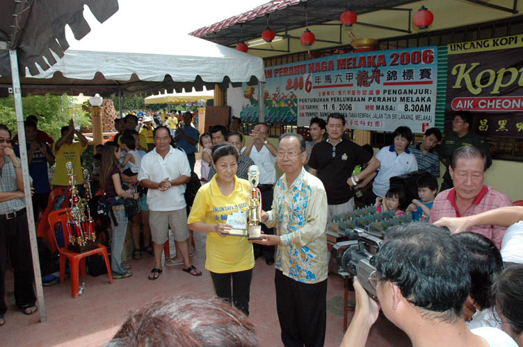 ![]() 马六甲龙舟促进会会长、拿督黄树党颁发“精神奖”给法轮功团体的女子队 |