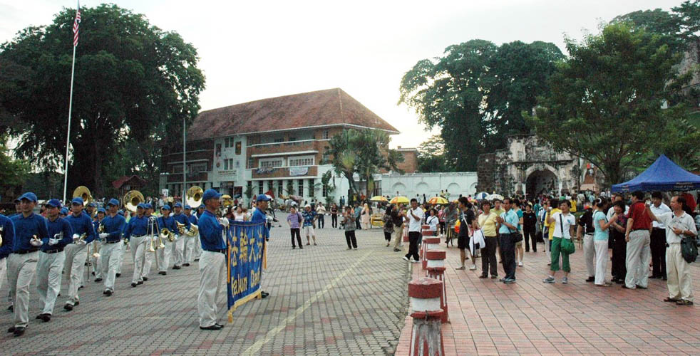 ![]() 二零零六年五月十三日,马来西亚法轮功学员聚集马六甲古城,庆祝法轮大法洪传世界十四周年。 |