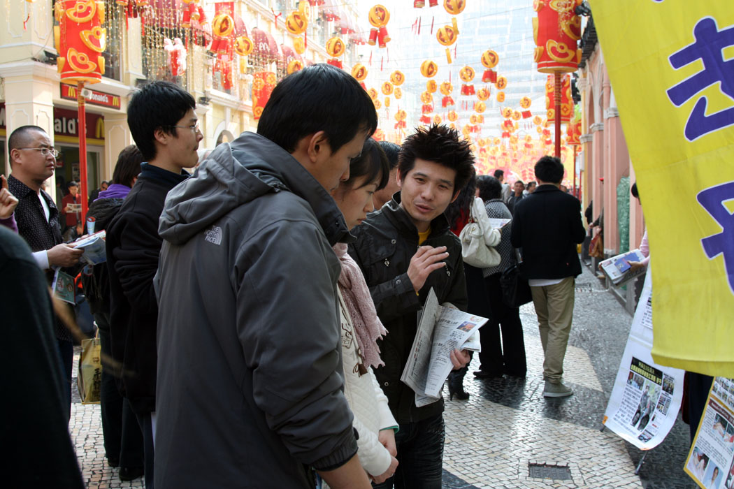 【明慧网二零一一年二月五日】二零一一年二月四日,正是中国新年大年初二,澳门法轮功学员利用假期除了在每天坚持的景点上劝三