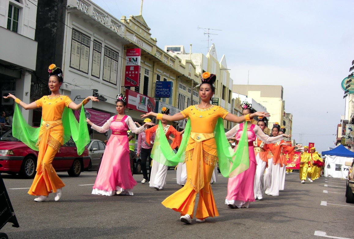 ![]() 仙女队走在麻坡市的街头上,让民众想起中国真正的古老文化。 |