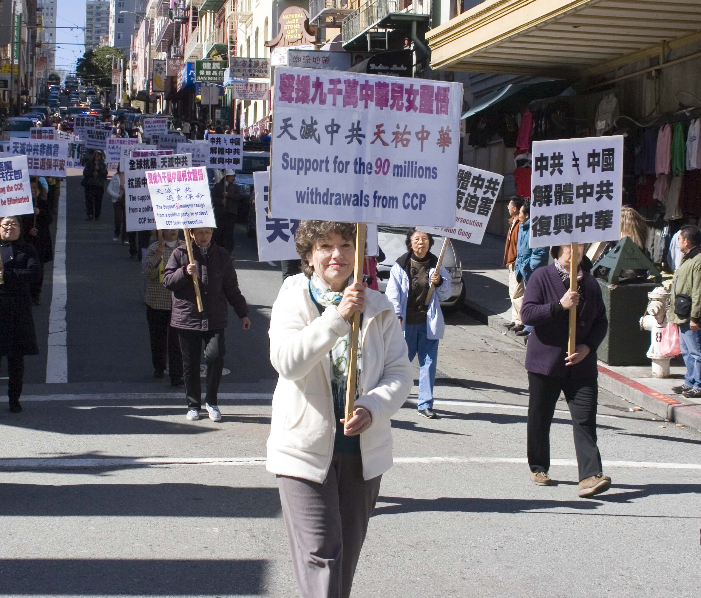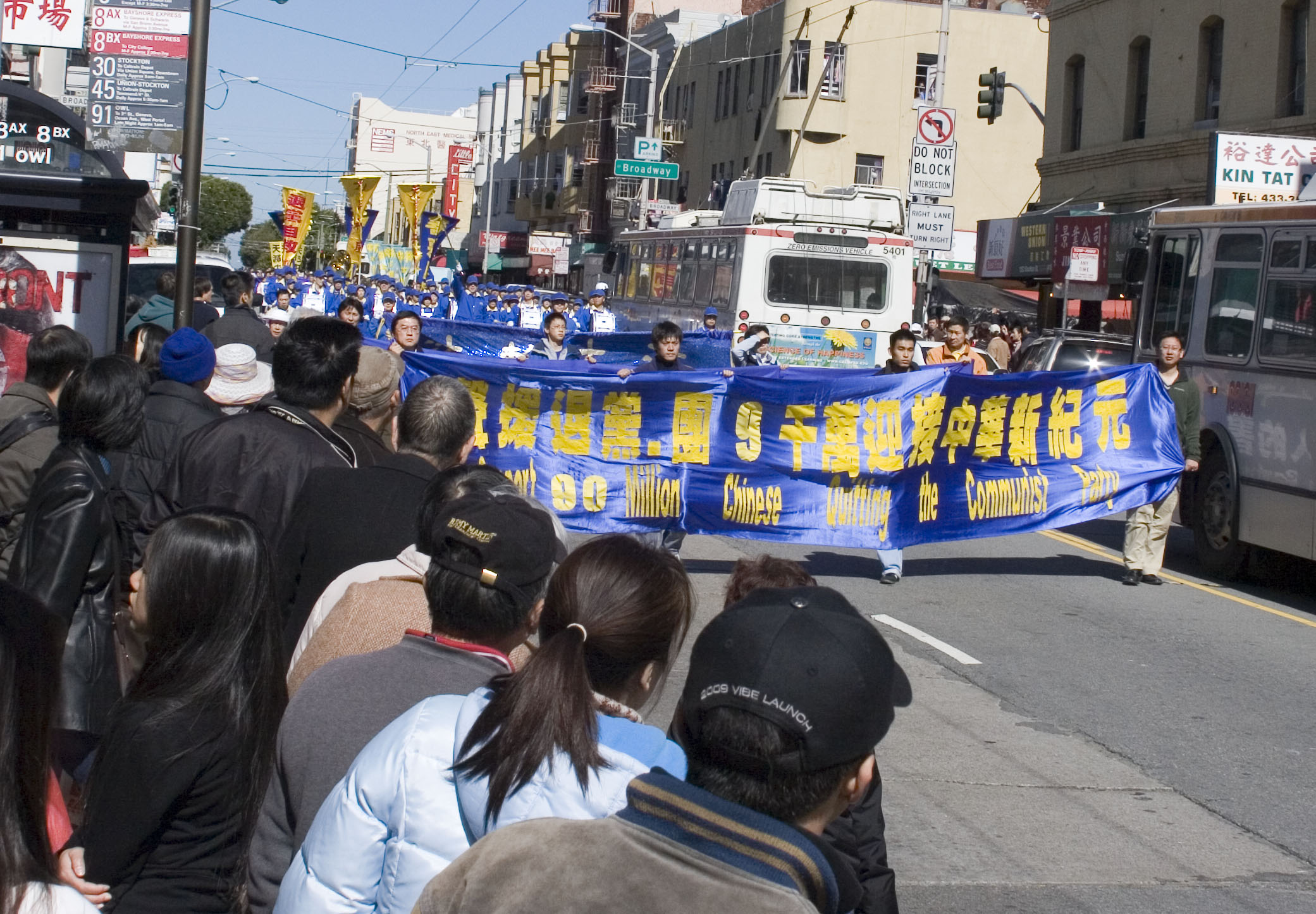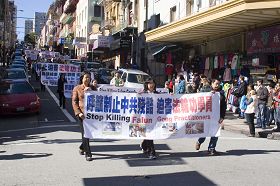 :退.,呼吁制止迫害。>二零一一年二月二十七日,旧金山的法轮功学员和支持者在旧金山中国城游行,声援九千万三:退.,呼吁制止迫害。 |