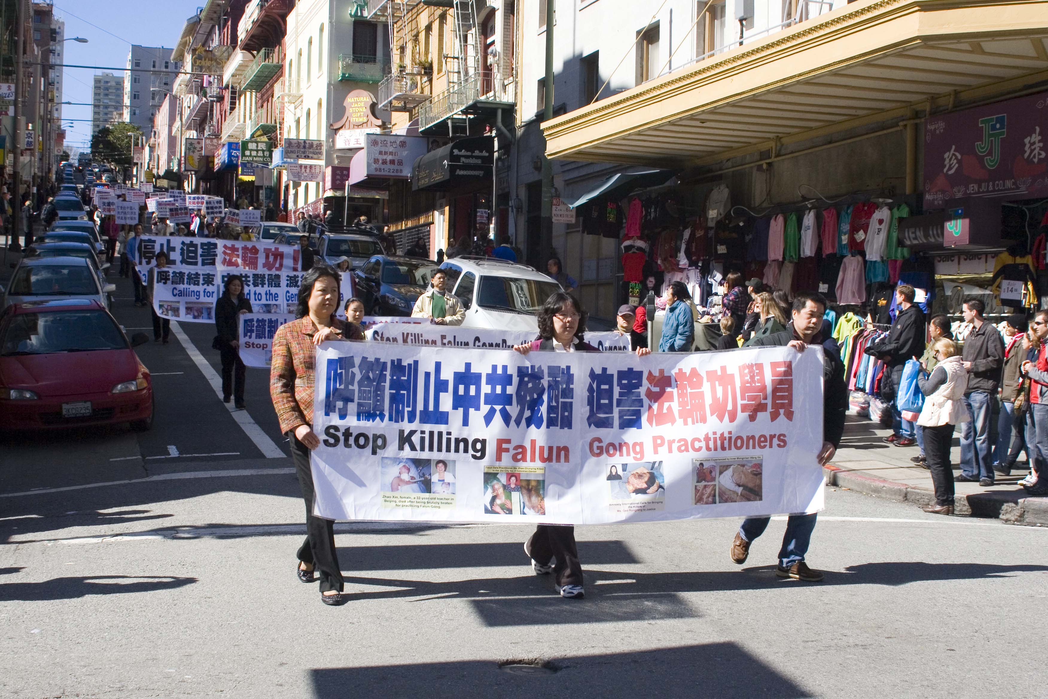 旧金山有数十万华人,尤其中国城是华人聚集,游人必到之地,自一九九九年七月,中共和江泽民动用国家机器开始迫害法轮功以后,铺天盖地用谎言宣传,污蔑诋毁法轮功,使许多民众,尤其是中国人受骗,误解法轮功。为了让更多的人明白真相,自二零零五年十一月,旧金山地区的法轮功学员每天都在中国城设真相点,展示真相图片,揭露迫害,告诉民众法轮功是什么,中共如何邪恶,并规劝来自中国大陆的人士退出邪*党-及其团队组织(三:退.),不要与邪恶为伍。