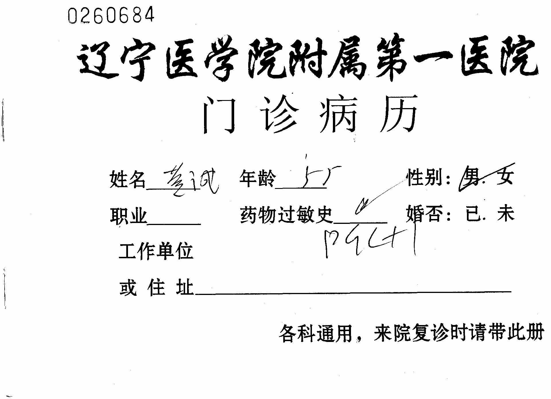 ![]() 辽宁医学院附属第一医院的门诊病历 | ![]() 宁医学院附属第一医院的X射线检查会诊报告单 | ![]() 宁医学院附属第一医院的诊疗记录 |