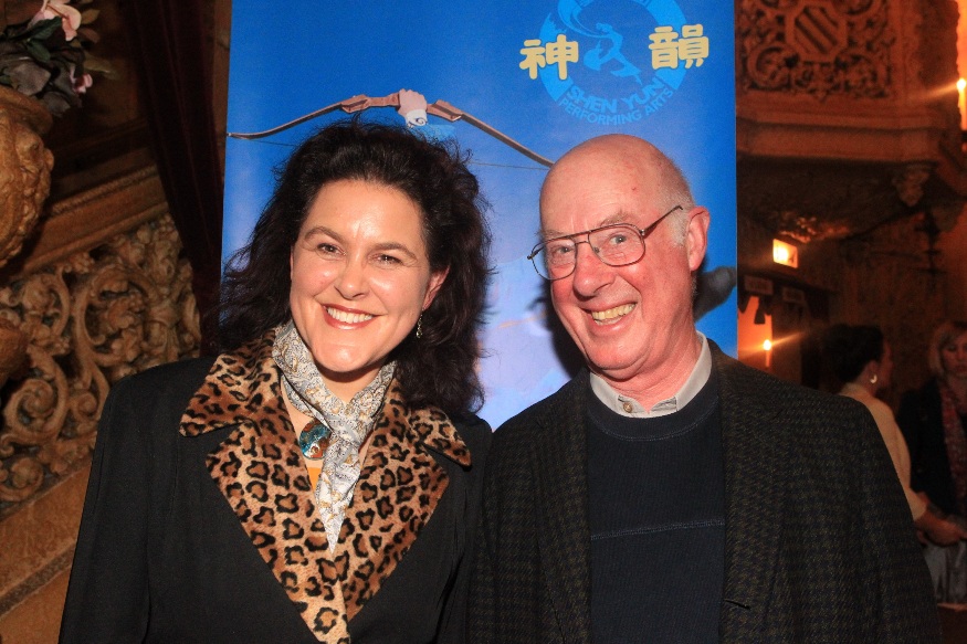 澳大利亚勋章获得者,著名音乐家、指挥家道格拉斯(Douglas Heywood)先生与担任音乐教师的太太亚历山达(Alexandra Cameron)女士一起观赏神韵演出,表示完全陶醉其中,并且认为神韵是导人向上的艺术。