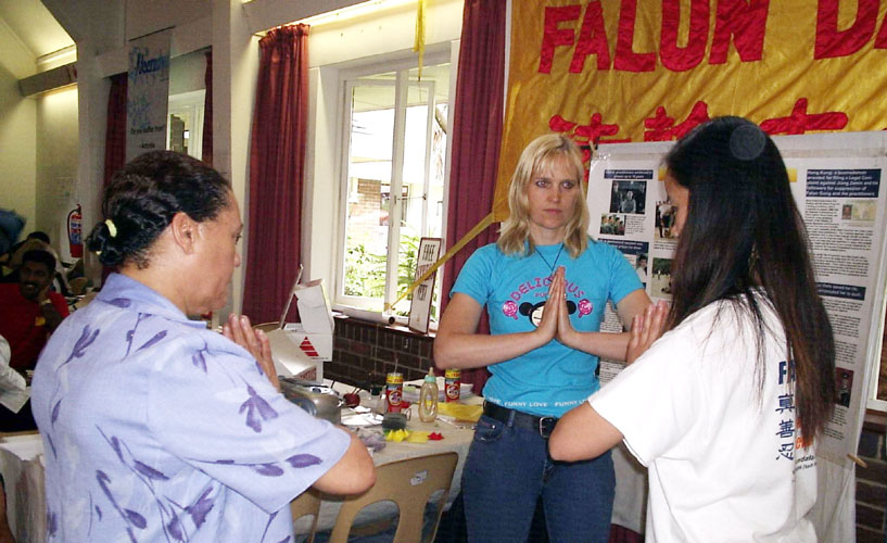 二零零四年八月二十九日,德班举行了每季度的健康博览会。平和而优美的《普度》、《济世》音乐和法轮功教功录像吸引了许多人前来了解。当得知法轮功学员每周都有免费的教功班时,民众高兴地说这个功法太好了,并表示要来学炼。
