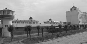 ![]() 佳木斯监狱岗楼、高墙电网 和墙内的监舍大楼 | ![]() 佳木斯监狱办公楼 |
