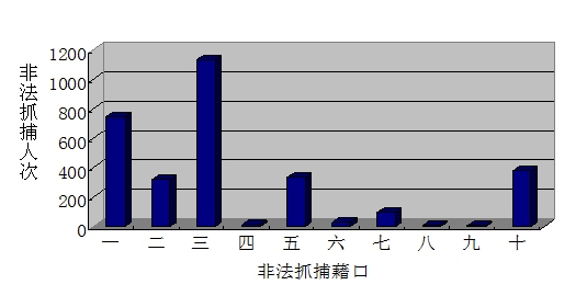 | 种类编号 | 非法关押借口 | 非法抓捕(人次) | 非法劳教(人次) | 非法判刑(人次) |