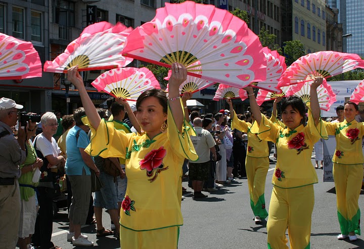 从二零零三年以来,每年法兰克福都会举办一次多元文化节,其目的是使城里来自一百八十多个民族的人能够互相了解、和平相处、共同发展。在中国文化方面,自二零零三年以来,法轮功学员组成腰鼓队、花车和天国乐团等精彩表演,成为文化节中一道亮丽的风景,每次皆赢得观众与评审的高度好评。