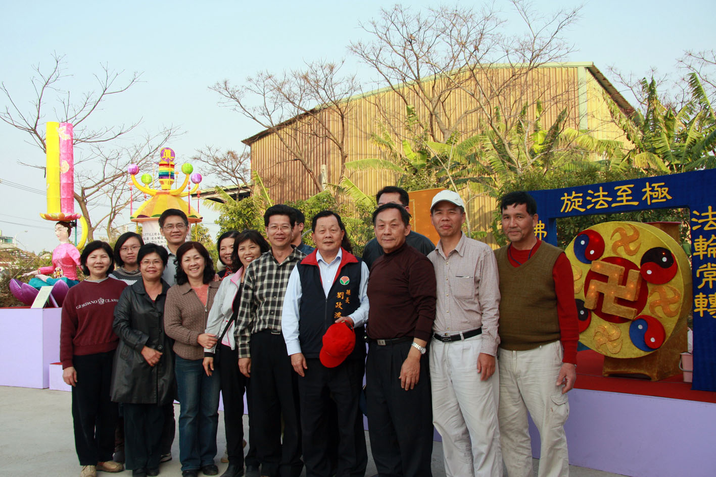 ![]() 苗栗县长刘政鸿、副县长林久翔于二月七日视察苗栗灯会布置场地时,对法轮功学员的灯区赞誉有加,并与法轮功学员合影。 |