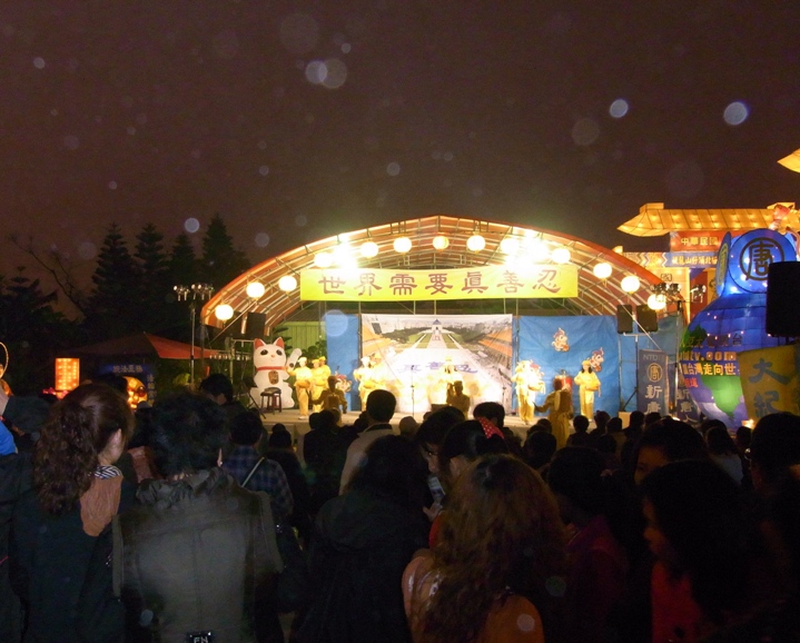 法轮功学员在灯会开、闭幕日以及两个周休假期都安排了腰鼓、合唱和中国古典舞舞蹈等精彩的表演,吸引众多观赏人潮。