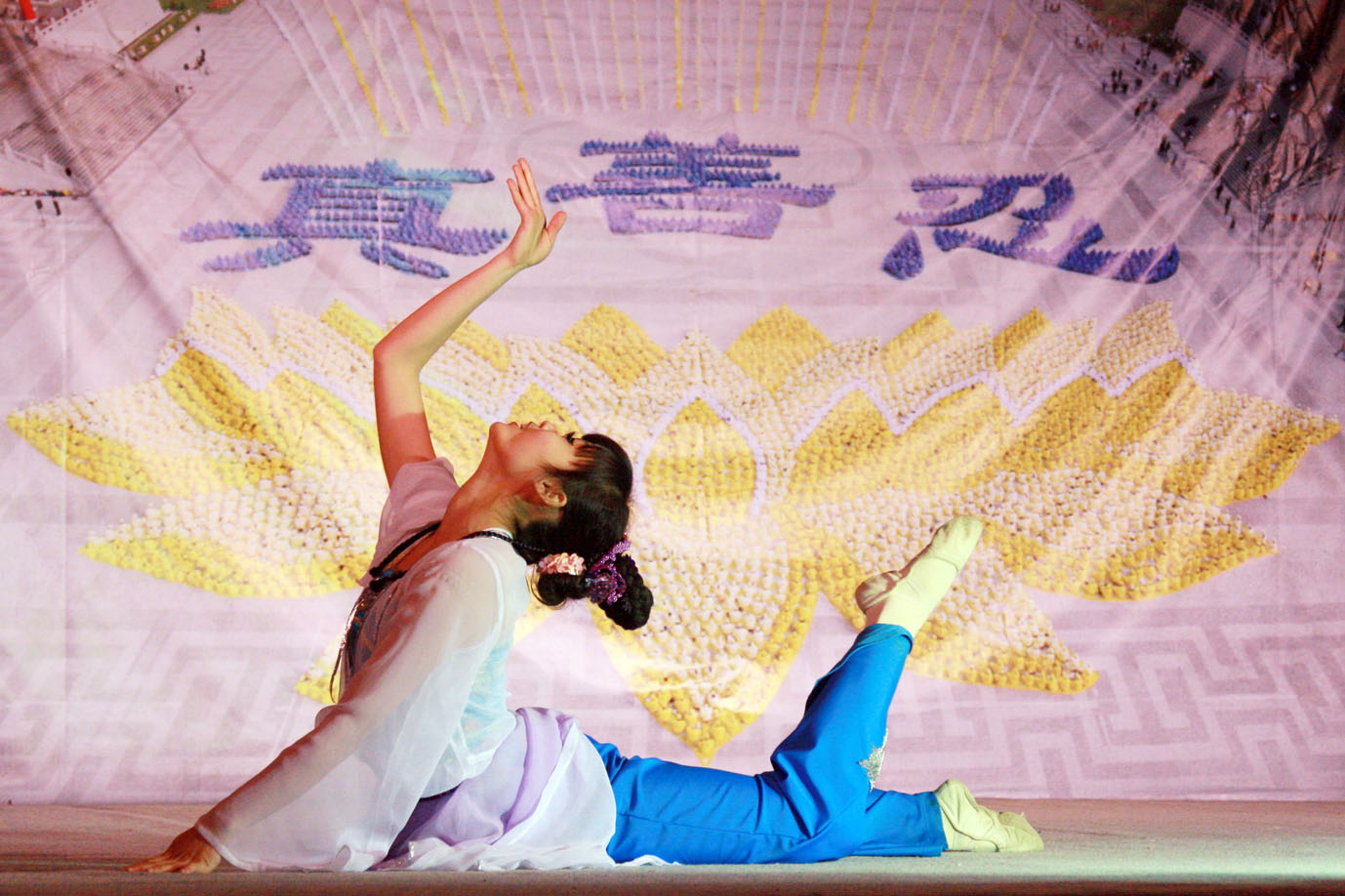除了腰鼓和合唱的表演外,法轮功学员还表演了中国古典舞舞蹈,使在场民众为之倾倒。