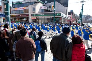 集会之后沿着唐人街举行了盛大的游行,天国乐团洪亮庄严的音乐,以及有各种巨大横幅和旗帜的队伍,赢得了沿途观众的称赞。