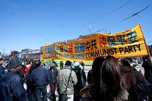 ![]() 三月十九日,各界人士在多伦多市中心参加声援九千一百万勇士退出中共集会及游行。 |