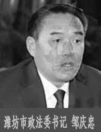 诸城市委书记邹庆忠被提升为潍坊市委常委、政法委书记;