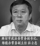 二零一一年一月四日下午,去年底(二零一零年十二月三十一日)新上任的潍坊市委常委、政法委书记邹庆忠,潍坊市政法委常务副书记、维稳办常务副主任杜士忠,潍坊市政法委副书记刘效伟等中共邪*党-官员,到潍坊市公安局下令迫害法轮功。潍坊市公安局长闫希军及李树平、隋汝文、丁新杰、夏光、张志才、薛林、毛伯平、林少波等局主要官员参与邹庆忠鼓励潍坊公安执行中共迫害法轮功政策。