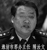 隋汝文,男,二零零四年期间任潍坊市坊子区政法委书记;二零零七年十月为潍坊市公安局副局长;二零零九年初至今任潍坊市“六一零”(江泽民为迫害法轮功成立的非法组织,凌驾于公、检、法之上)主任,潍坊“六一零”现又名为“邪办”。隋汝文是执行迫害法轮功政策主要责任人之一,家电0536-8783031,手机13806495398