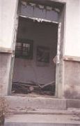 ![]() 屋内天花板被撬坏 | ![]() 大院内一片狼藉 | ![]() 窗户 |