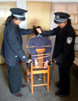 二零一零年三月五日,何书群到梁家巷小区贴真相资料时被绑架,荷花池街道办事处、“六一零”(中共专门迫害法轮功的非法机构)头目李白贵等将她拉到杨柳村派出所,恶警踢她,骂她,当天风雨交加,恶警将何书群铐上脚镣、手铐,绑在椅子上,放在院坝里任风刮雨淋,从晚上七点一直到下半夜二至三点。而警察在屋里穿着羽绒服、烤火。第二天九点,恶警将何书群老人劫持到金牛区洗脑班,折磨十九天,直到她女儿去要人才放她出来。