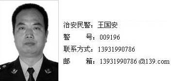 东环派出所 治安警察:王国安 13931990786