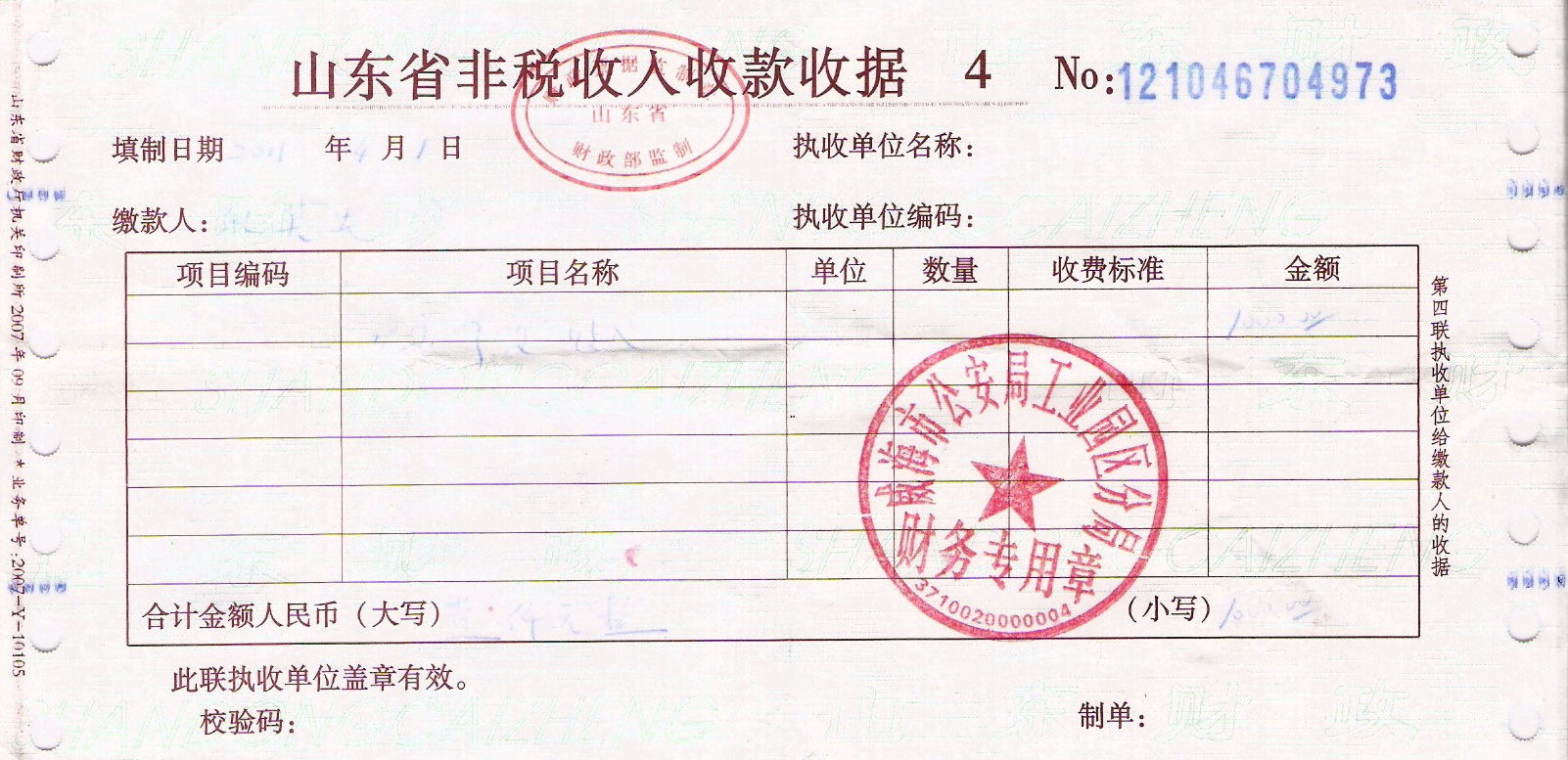 ![]() 这张图片是国保不法人员敲诈张英仙家人一千元钱的收据。从收据上,只能勉强辨别1000的数字。至于“项目名称”栏,根本看不清楚。收款人是谁,也没标注。 |