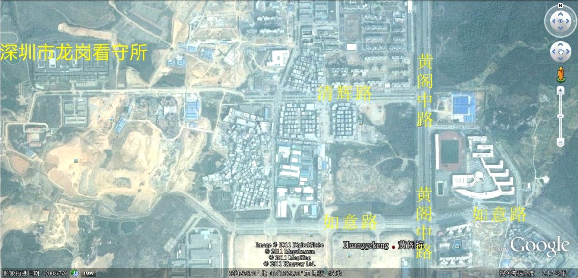 去之前先熟悉一下龙岗看守所的地点、地形和路况,至少也得从网上或其它方式了解一下,以便更加从容镇定和更有效果。从下面的地图可以知道,从龙岗各个不同地方和方向都能够去龙岗看守所,但入口处就是清辉路,清辉路前面横着的,是黄阁中路。
