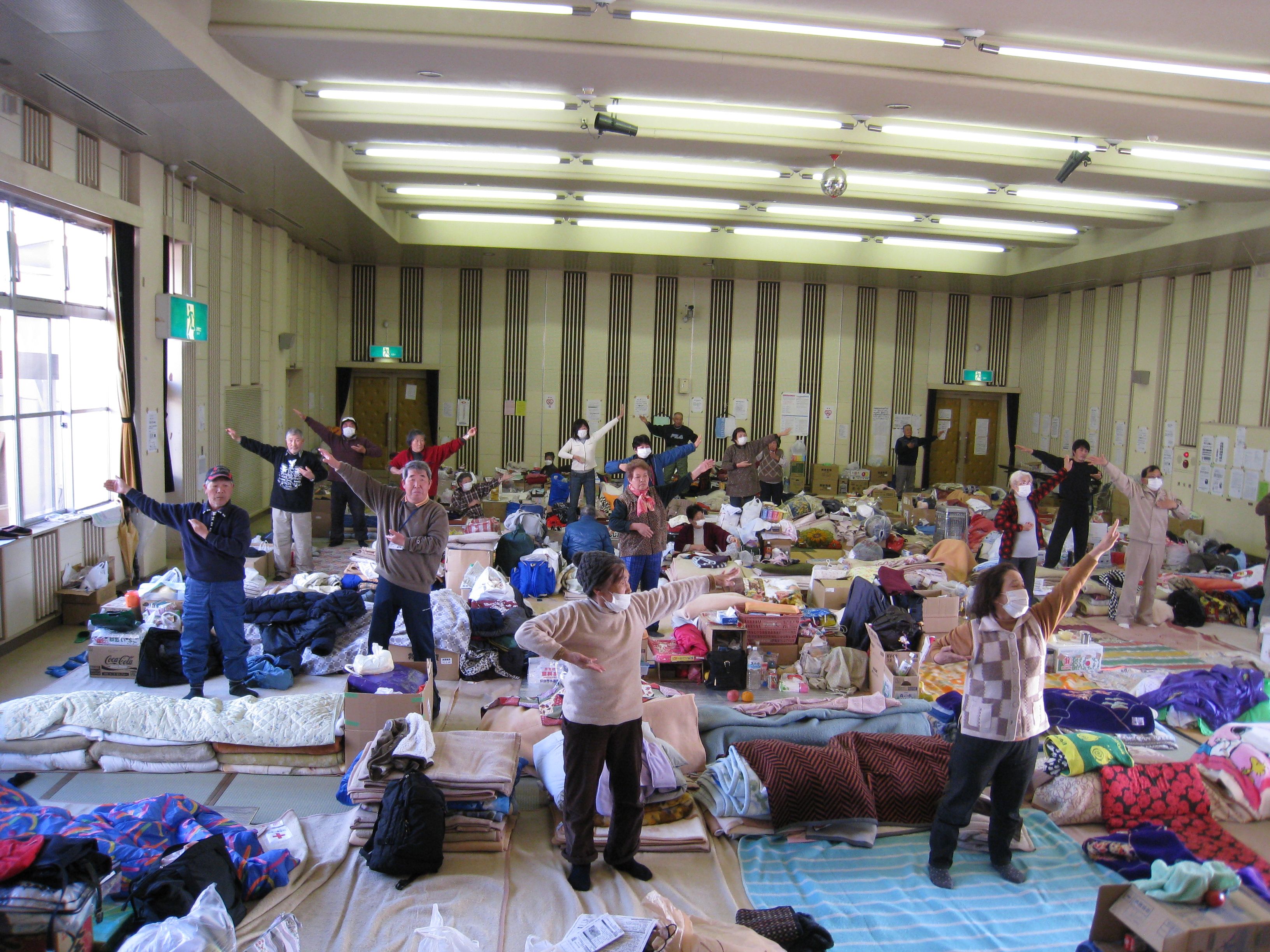 ![]() 法轮功学员在名取市避难所教授法轮功功法 |