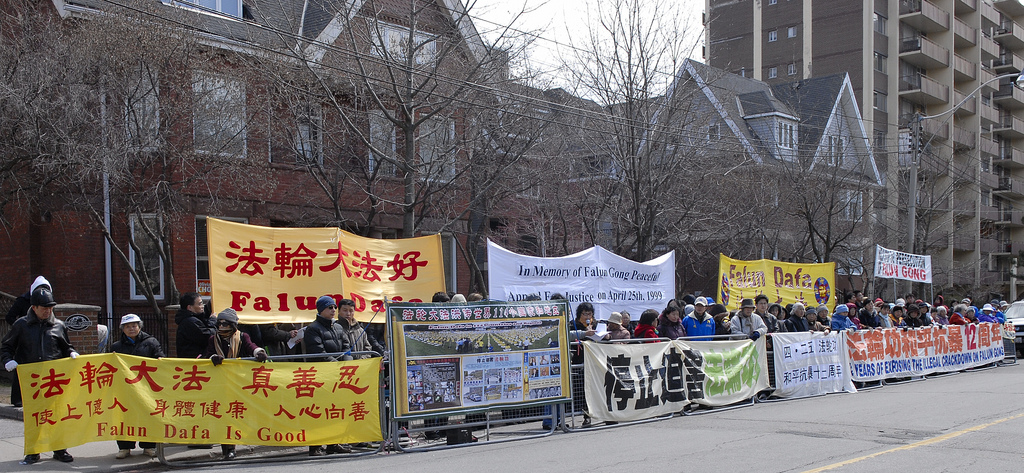 在中共监狱受迫害七年的法轮功学员黄新,来自沈阳,她二零一零年四月出狱,十二月到达多伦多。她在集会上发言说:“我一九九六年开始修炼法轮功,修炼两个月后,全身的疑难杂病全好了。九九年我参加了“四•二五”上访。“七•二零”中共开始了对法轮功的全面迫害,九九年的八月,我开始走上了艰难的上访之路。”