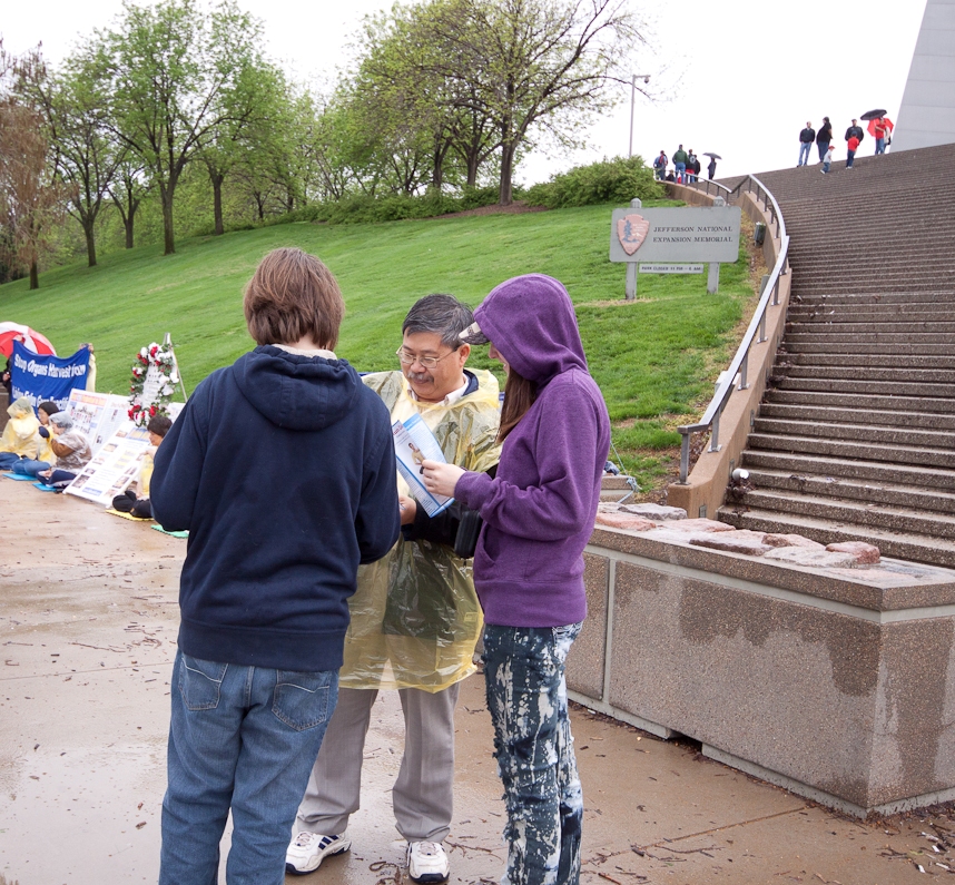 一个年轻的小伙子在看完展板后,向学员不解地问道:“为什么迫害得这么严重,还有那么多人冒着生命危险继续修炼法轮功?” 学员解释说:“‘真、善、忍’是支持他们走下去的精神力量,遵循‘真、善、忍’的真理做一个好人是他们的信仰,这是任何强权暴力无法改变的。中共迫害法轮功十二年了,法轮功不但没有被打倒,反而传播到了世界各地,这是中共万万没有料到的。邪不胜正,乌云始终遮不住太阳。”