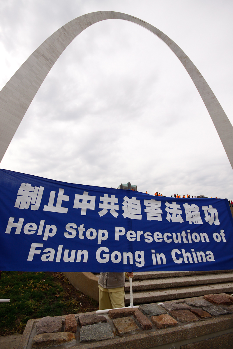 ![]() “制止中共迫害法轮功”横幅传递着正义呼声 |