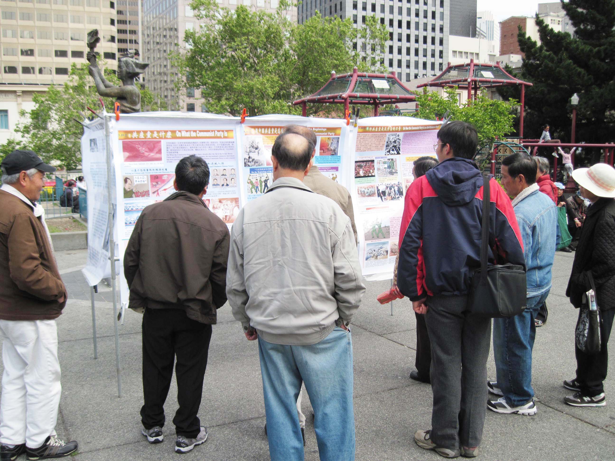 ![]() 民众在观看法轮功真相图片 | ![]() 民众在观看法轮功真相图片 |