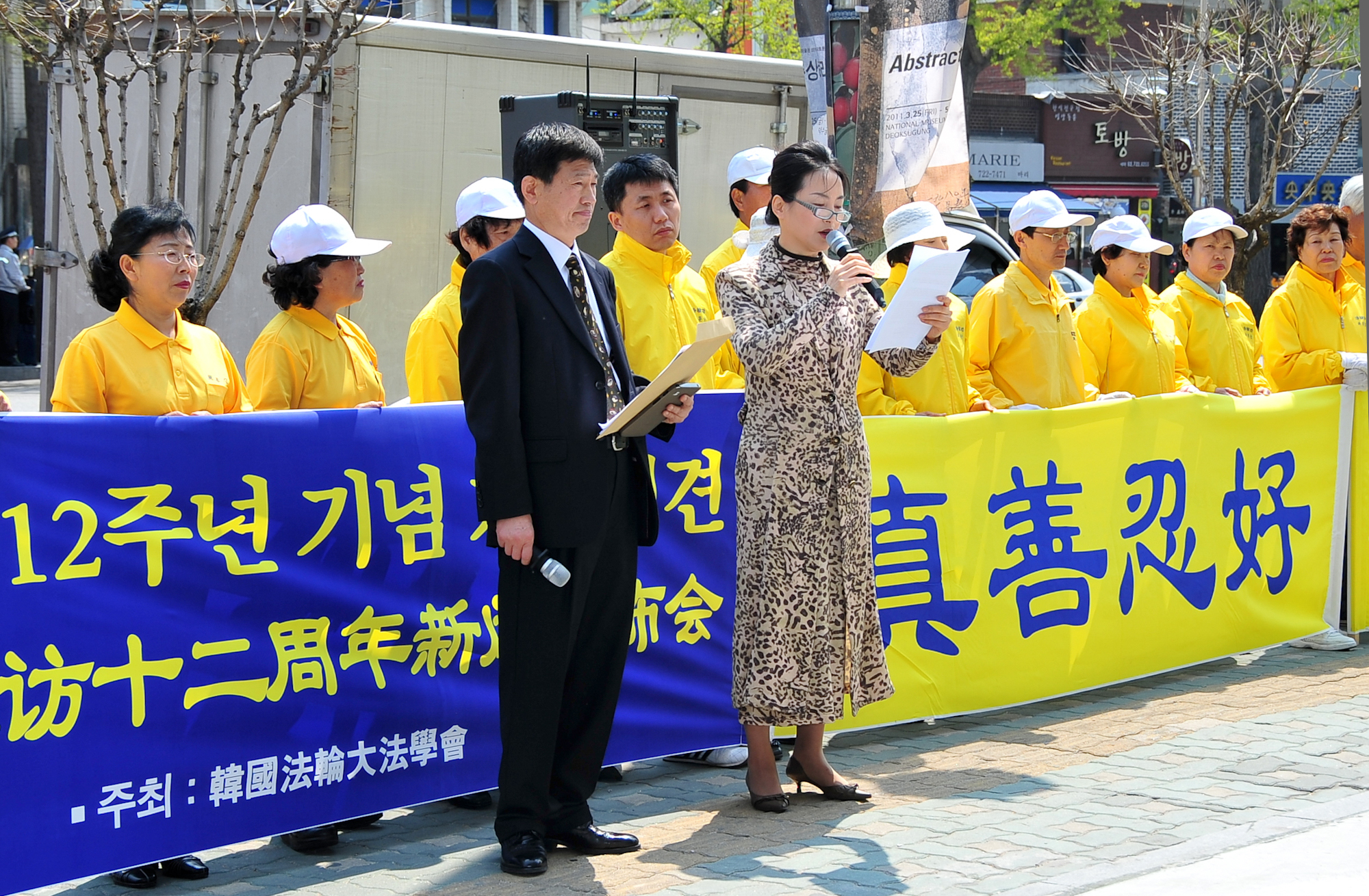 当天的新闻发布会上,韩国法轮大法学会副会长李天秀阐述了十二年前“四二五”事件的真相。李天秀表示,当时中国法轮功学员的急剧增多,令独裁者江泽民产生了强烈妒嫉和恐慌,并企图以“围攻中南海”为借口,对法轮功学员展开血腥镇压。
