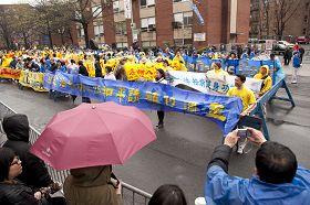 著名诗人兼民主斗士黄翔说,自己身为一个中共受害者,看到法轮功游行集会活动,非常感动。他形容法轮功学员“信仰如此坚定,风雨无阻,是不可战胜的力量。”