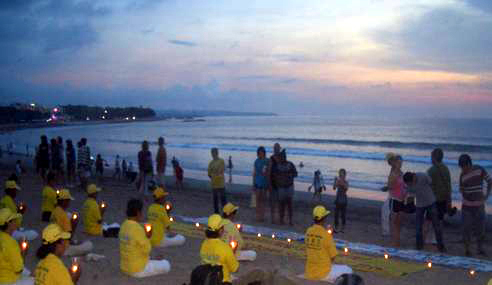 ![]() 巴厘岛法轮功学员举办烛光守夜活动,纪念“四二五”和平上访,吸引许多游人观看。 |