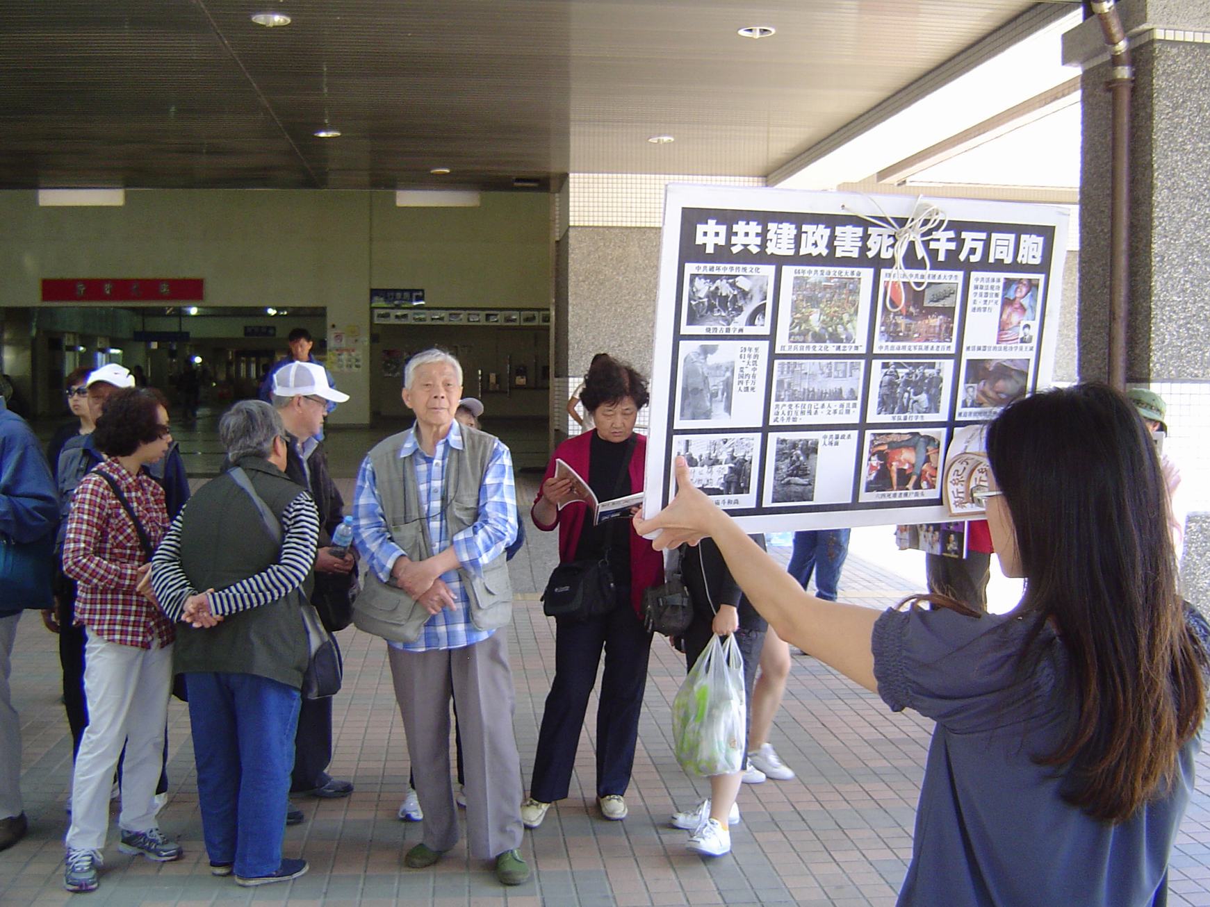 ![]() 游客观看展板,或阅读真相资料 |