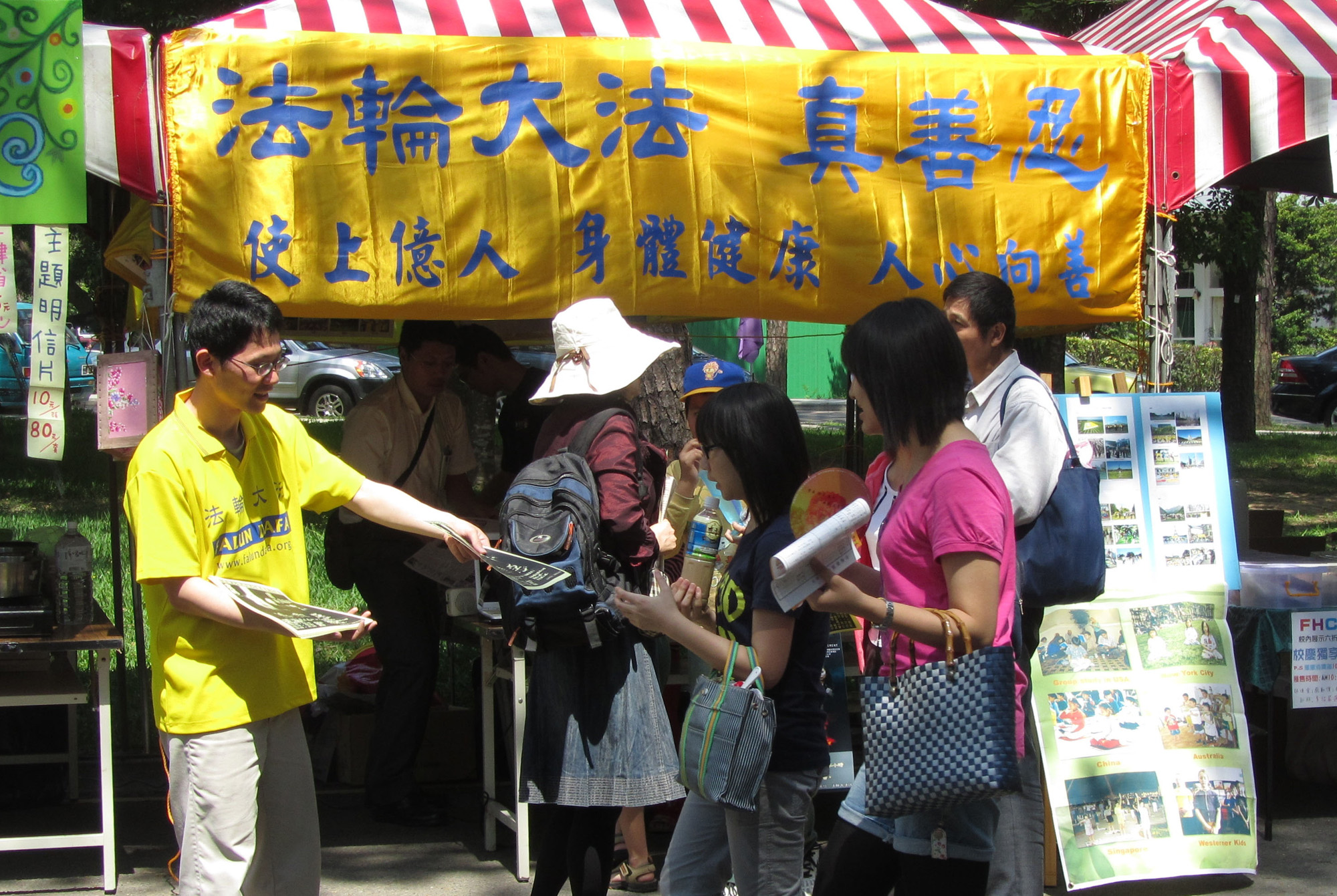 ![]() 台湾清华大学校庆活动中法轮大法社的展位。 |