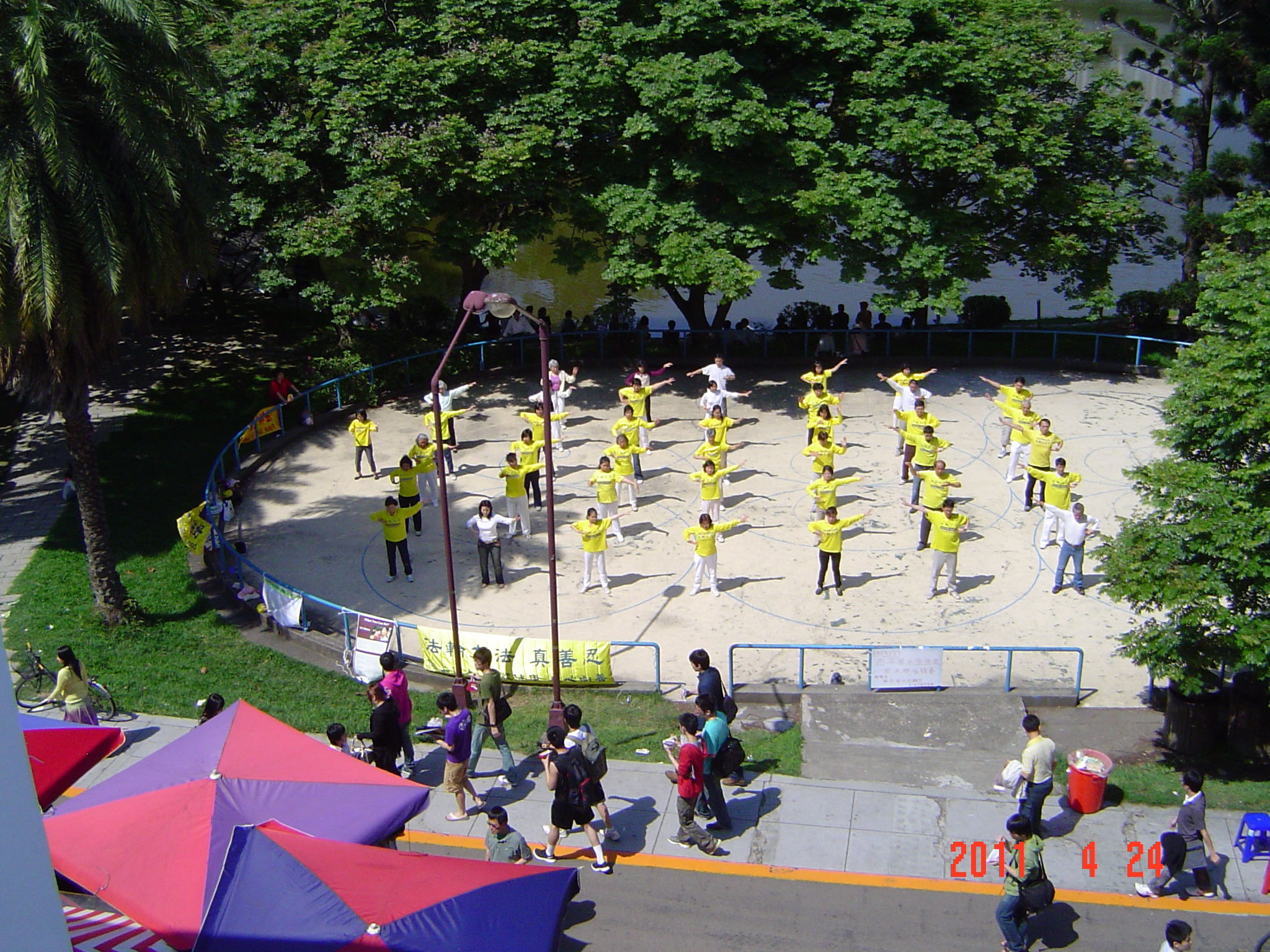 ![]() 台湾清华大学校庆活动,法轮大法学员展示功法。 |