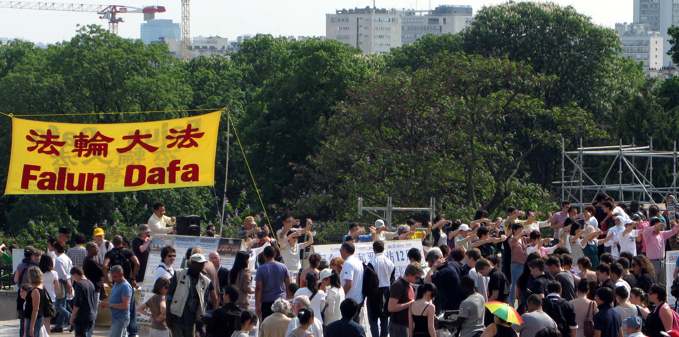 ![]() 法轮功学员在埃菲尔铁塔对面的人权广场上展示功法,传播真相 |