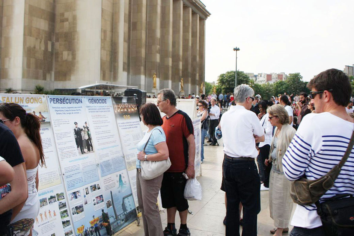 ![]() 巴黎法轮功学员纪念四•二五十二周年的活动吸引很多民众前来了解真相 |