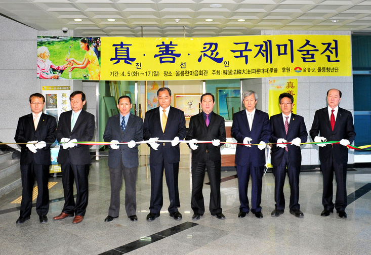 ![]() 韩国第一百一十期“真善忍国际美术展”于二零一一年四月五日在韩国“郁陵岛”揭幕 |