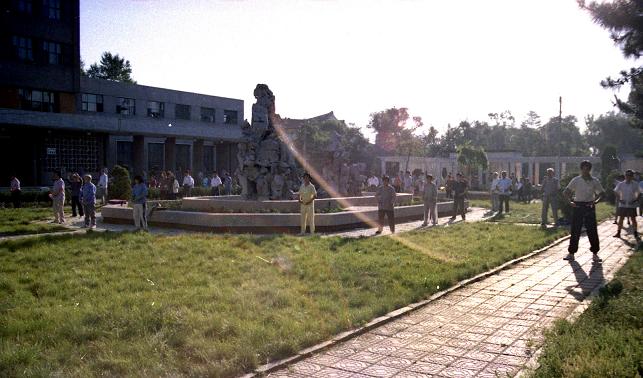 这里是一个幽静的小花园,有花坛假山,甬路长廊,比别处更加宽敞明亮。后来,到这里来炼法轮功的人越来越多,很快就装不下了。九五年以后,先后从这里分出去的吉林大学炼功点至少有六个:外语楼、文科楼、东朝阳路、体育馆、市规划院、吉大南区等,每个炼功点都有七、八十人。从当初的一个炼功点几个人,到七个炼功点五百多人,相隔不到三年。