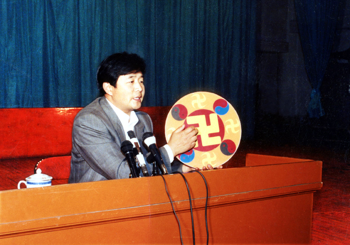 ![]() 一九九四年五月三日,师父在长春法轮大法第七期传授班上为学员讲解法轮图形 |