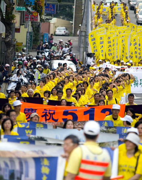 ![]() 台湾桃竹苗逾千名法轮功学员游行庆祝法轮大法日 |