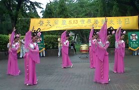 ![]() 民众观看法轮功学员表演的各项才艺演出,共庆五一三世界法轮大法日 |