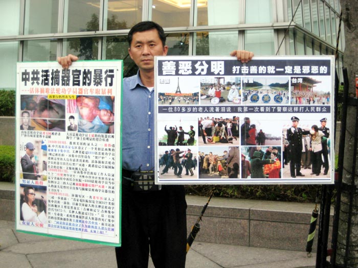 二零零九年四月份的一个周六,他随着熙熙攘攘的人群走在纽卡斯尔市中心的大街上,看到街上的法轮功学员,看到中共活摘法轮功学员器官这样令人发指的事情,心地善良的克里斯托弗就想了解法轮功和帮助这些遭受酷刑的人。他按照传单上的电话号码,给伦敦的义务联系人打了电话,知道在哪里买书,就去书店买了《转法轮》和《法轮功》回来读,还上网去了解更多的情况,然后就去纽卡斯尔当地的炼功点学功去了。