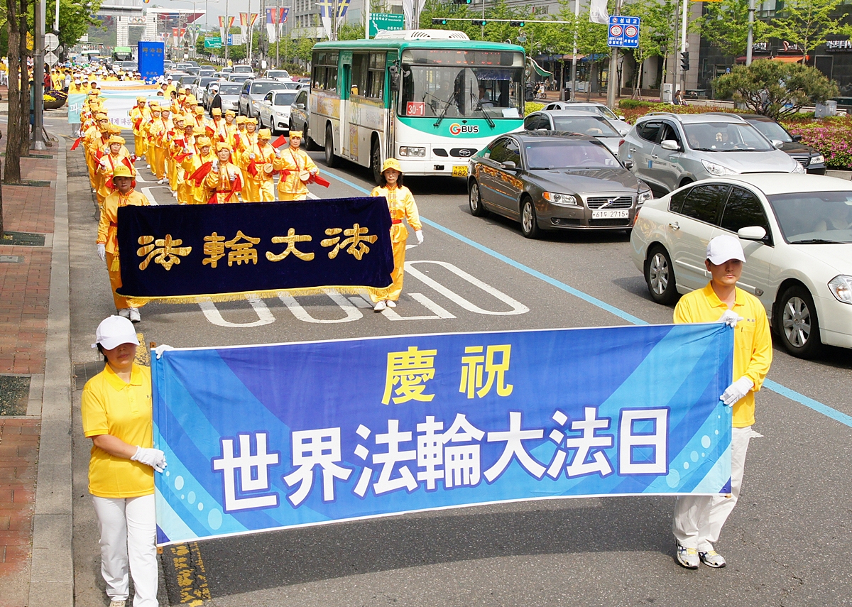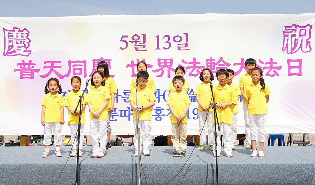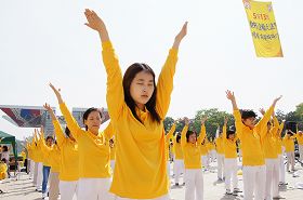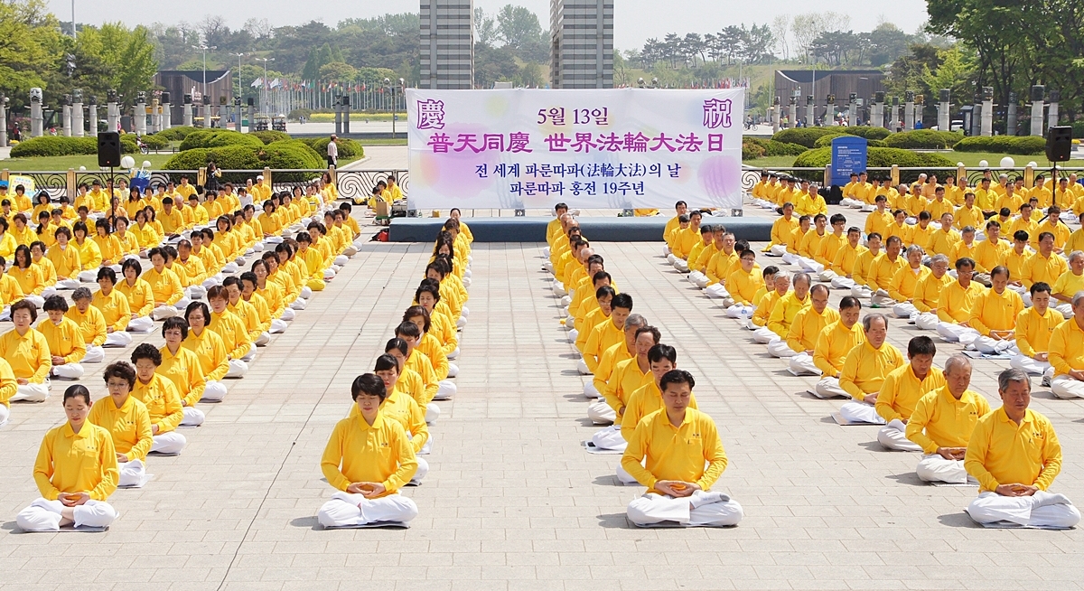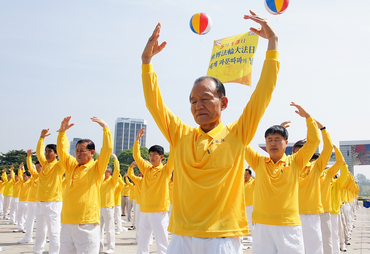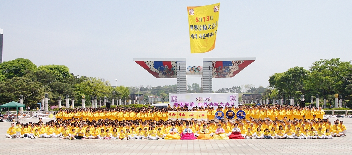 庆祝活动于当天上午在韩国首尔奥林匹克公园和平门广场举行,来自韩国各地数百名的法轮功学员演示五套功法后,拉开了活动序幕。