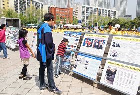 一名来自大陆的女孩看到在韩国有这么多的法轮功学员,感到太震撼了,这和在中国看到的宣传完全不一样,没想到法轮功在海外这么受欢迎。她表示要炼法轮功,现场就要求学员教她功法,另外,她所看到揭露迫害的图片很震惊 ,这也是她没想到的。
