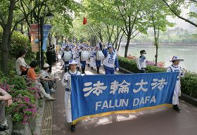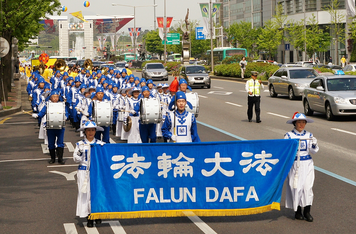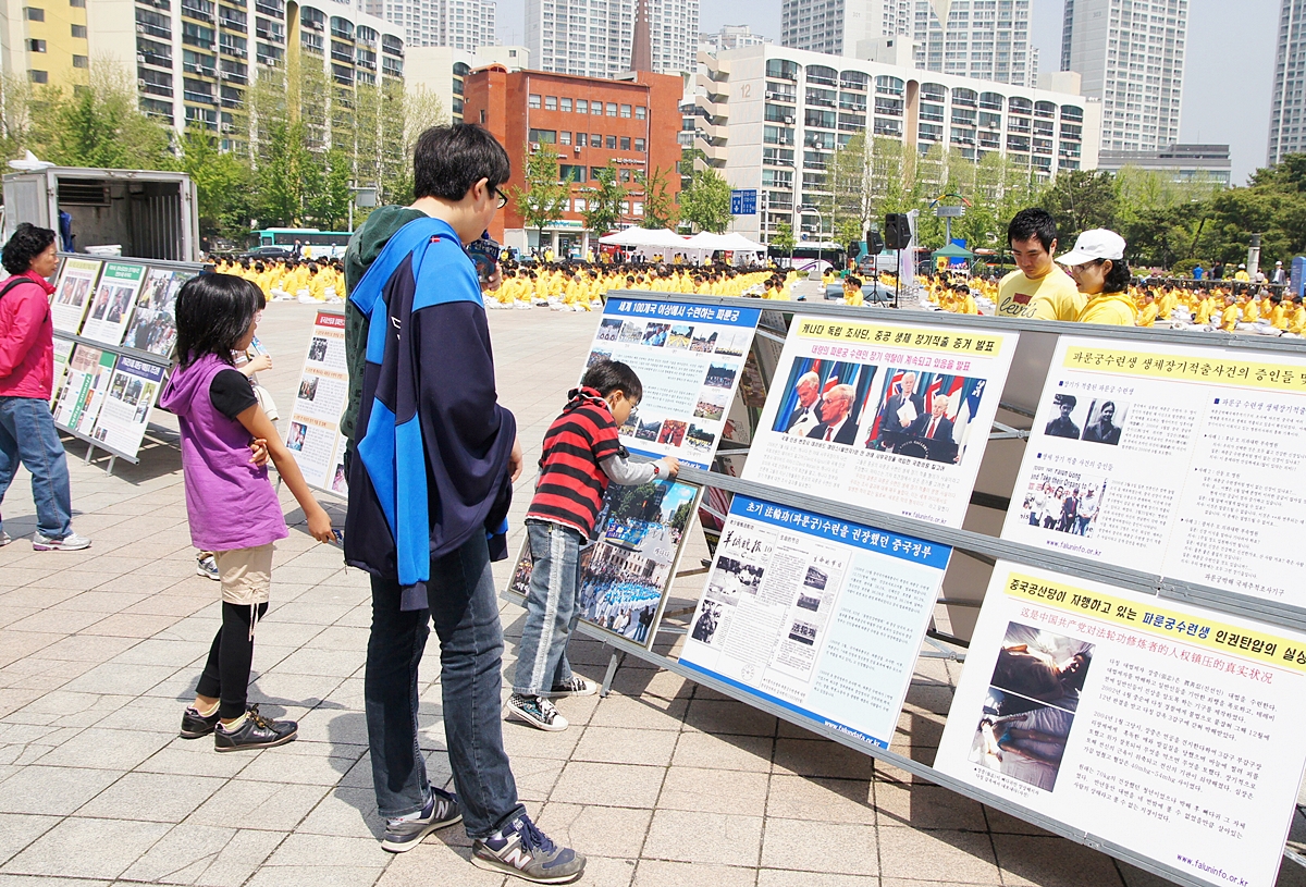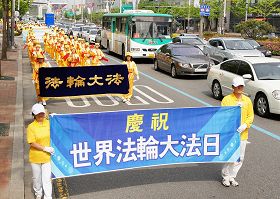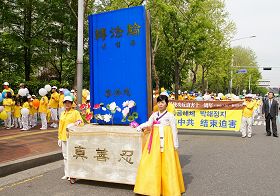 ![]() 五月八日韩国法轮大法学会在首尔奥林匹克公园举行集会和游行,很多民众对游行队伍表示出好奇和关注。 |